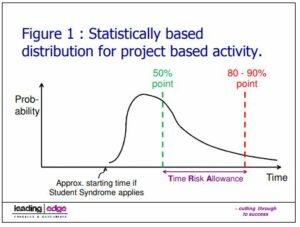 - People, if anything, deliver late due to Student Syndrome whereby people start an operation late in the belief that they have plenty of Time Risk Allowance. Unexpected common cause variation then occurs and they deliver late.