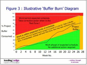 - you measure the extent of and rate of ‘Buffer Burn’ along each chain of operations (see Figure 3 below as an example).