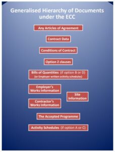 Various writers on the NEC in previous editions of this Newsletter have stated that, to quote Keown, “there is no hierarchy of documents in the ECC” with the contract being “very precise over the functions of each of the ... ... components and they do not conflict”. I agree with the second statement and the first in principle, but not necessarily in practice. To illustrate the point, I will give some examples of where one document would take precedence of the other in the case of an ambiguity or inconsistency between them. I conclude with a generalised hierarchy for documents under the ECC.