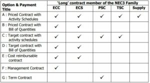 Table 1 : Contract Strategy / Payment options within the NEC3 Family of Contracts